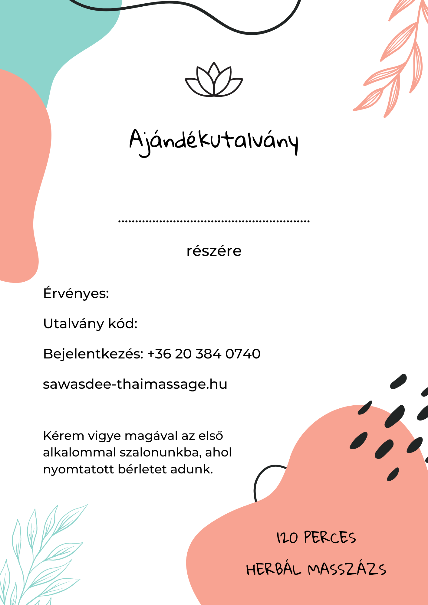 120 PERCES HERBÁL MASSZÁZS AJÁNDÉKUTALVÁNY