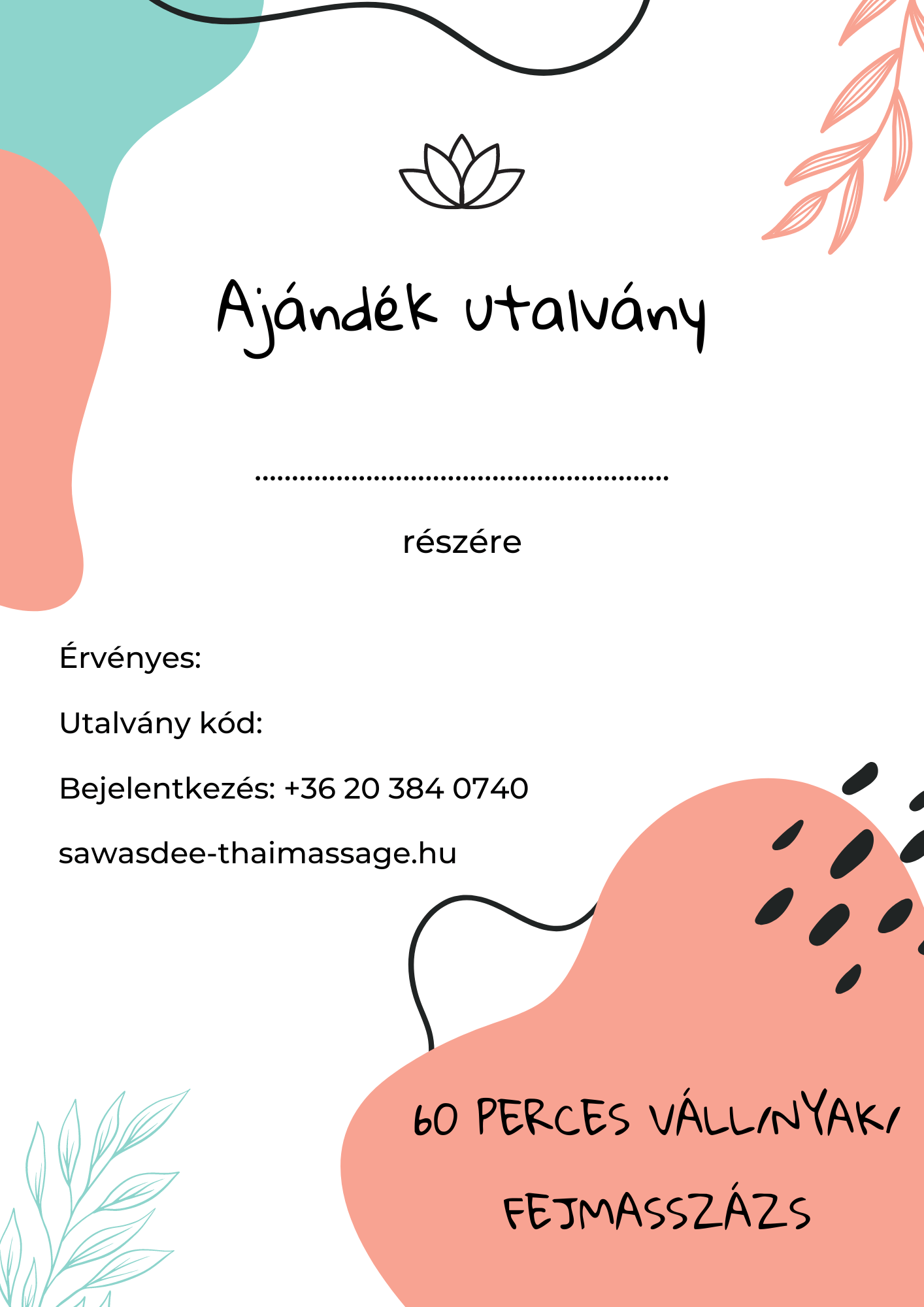 60 PERCES VÁLL / NYAK / FEJMASSZÁZS AJÁNDÉKUTALVÁNY